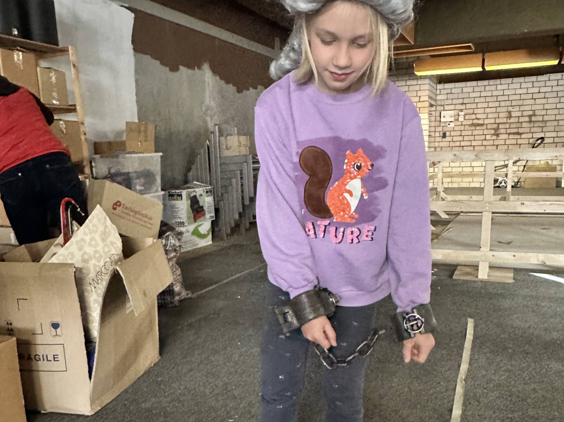 Und am Ende entwickelten die Kinder noch ein eigenes kleines gut durchdachtes und sehr witziges Bühnenstück, welches Sie vor den begeisterten Augen der Unterstützenden im Hintergrund, unserer Requisiteurin Ilse und deren Kollegin Gaby sowie unseres Produktionsleiters Volker, zur Aufführung brachten! Das war super – Ihr ward großartig!!!