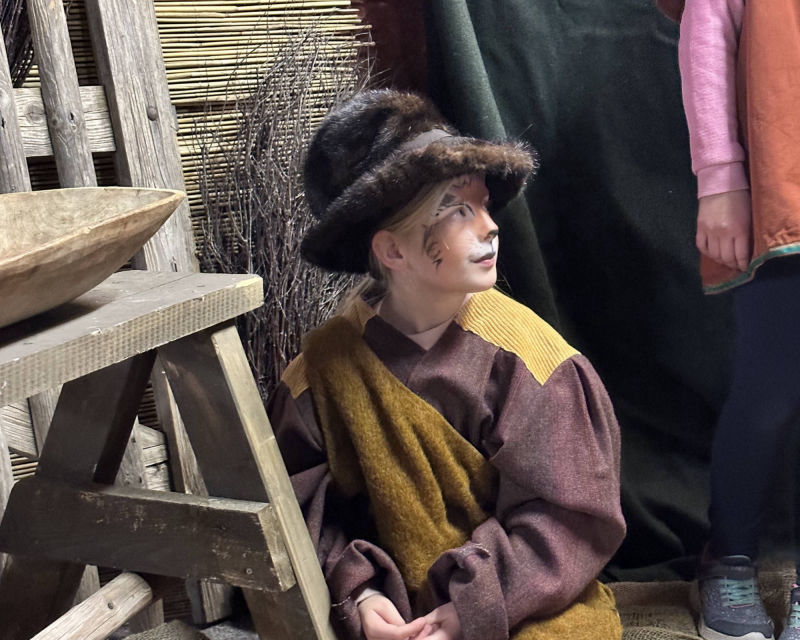 Mit viel Kreativität und viel Spaß gingen die Kinder an die Sache: Zuerst wurde in den Requisiten gestöbert, dann wurden die Kinder nach eigenen Wünschen von unserer Maskenbildnerin Ilenia geschminkt. Danach wurden Kostüme ausgesucht und anschließend gestalteten alle gemeinsam ein Bühnenbild.